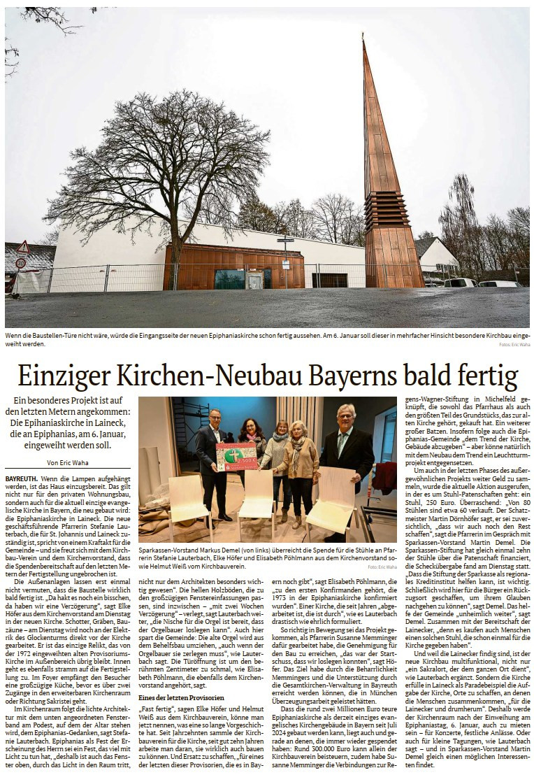 Die Evangelische Kirchengemeinde in Laineck baut derzeit eine neue Kirche. Der Nordbayerische Kurier und andere Medien haben hierzu mehrfach berichtet.